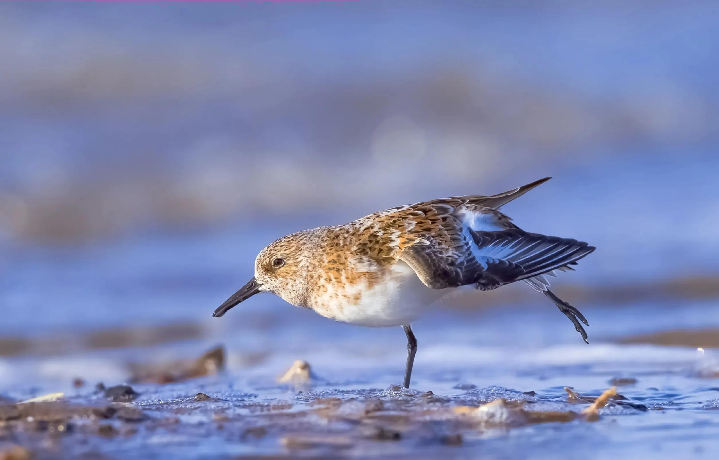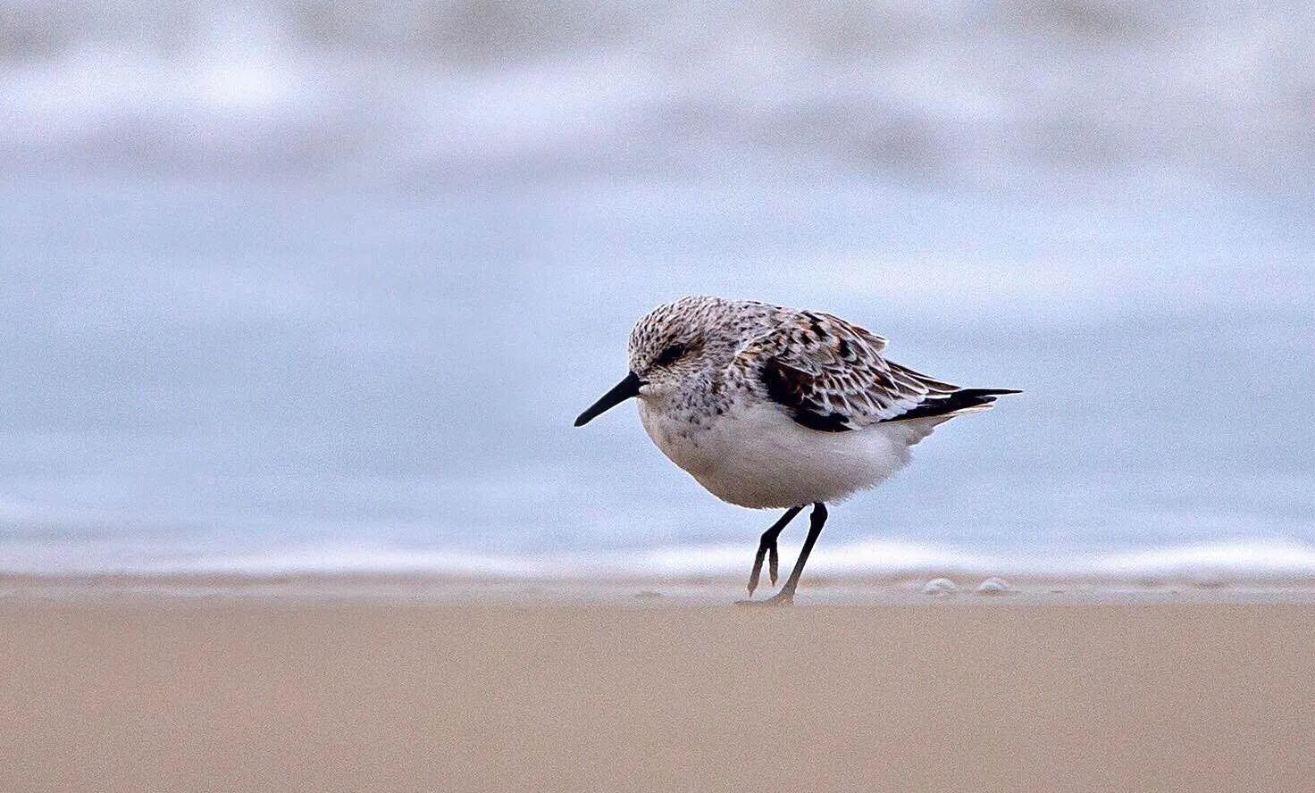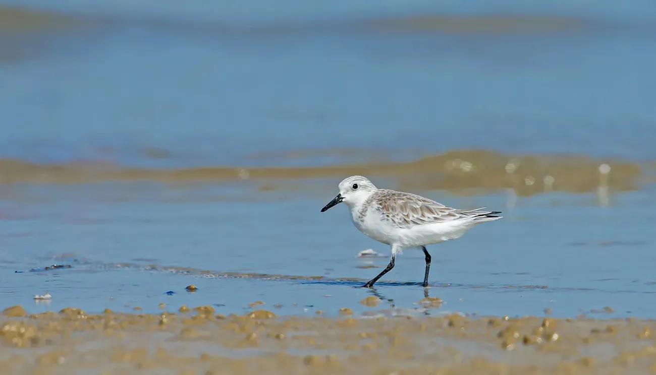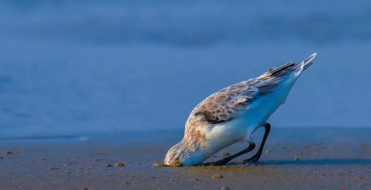 当潮水退去时,它们紧跟其后,沿着水边极速奔跑啄食,有时也会将鸟喙插入淤泥里探寻食物。而当潮水前进时,它们则会迅速的闪开,跑到潮水到不了的地方,等潮水退去又立马紧跟其后。如此周而复始,仿佛成了一种乐趣,甚至在遇到危险时也不愿飞走或者跑远,一般只有在涨大潮的时候才会离开潮水线到飞岸边休息。起飞时常伴随着它们尖利的鸣叫声,飞行时快而直,喜欢沿着水面低空飞行。