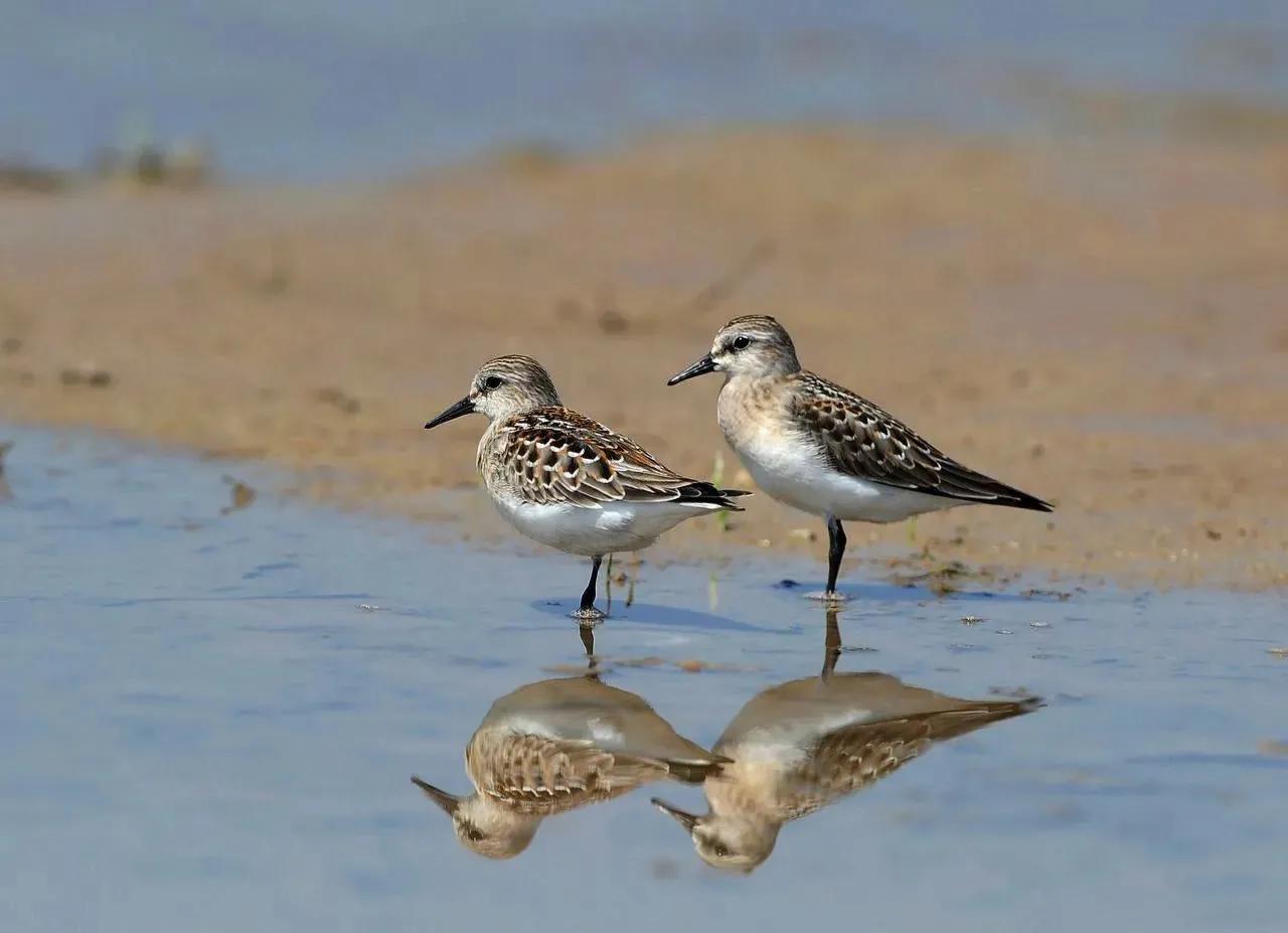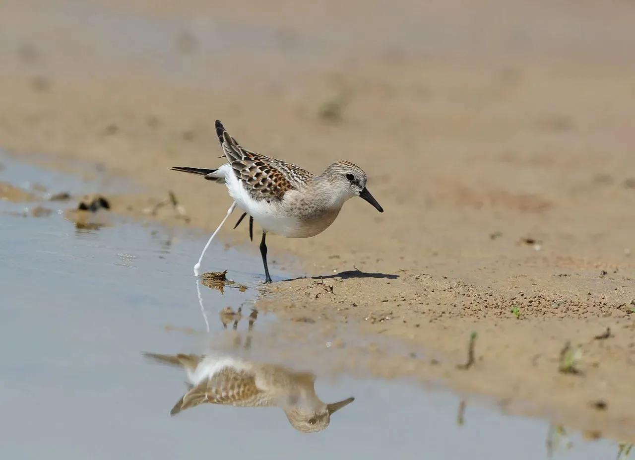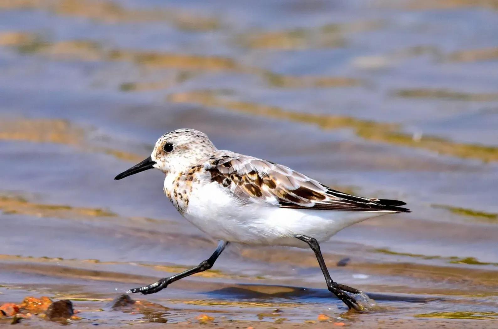 三趾鹬:鸻行目、鹬科、三趾鹬属鸟类,属小型鸟类。体长18-21厘米,体重48-84克。它们拥有黑褐色的鸟喙,如同锥子一般。爪子为黑褐色,眼睛是黑色的。喙周围、眼后、喉部为白色,点缀有细小的淡棕色羽斑,眼睛前方为棕褐色,额头以及头顶为淡棕黄色以及白色的混合,或者是黑褐色与贝白色的混合,呈条状。