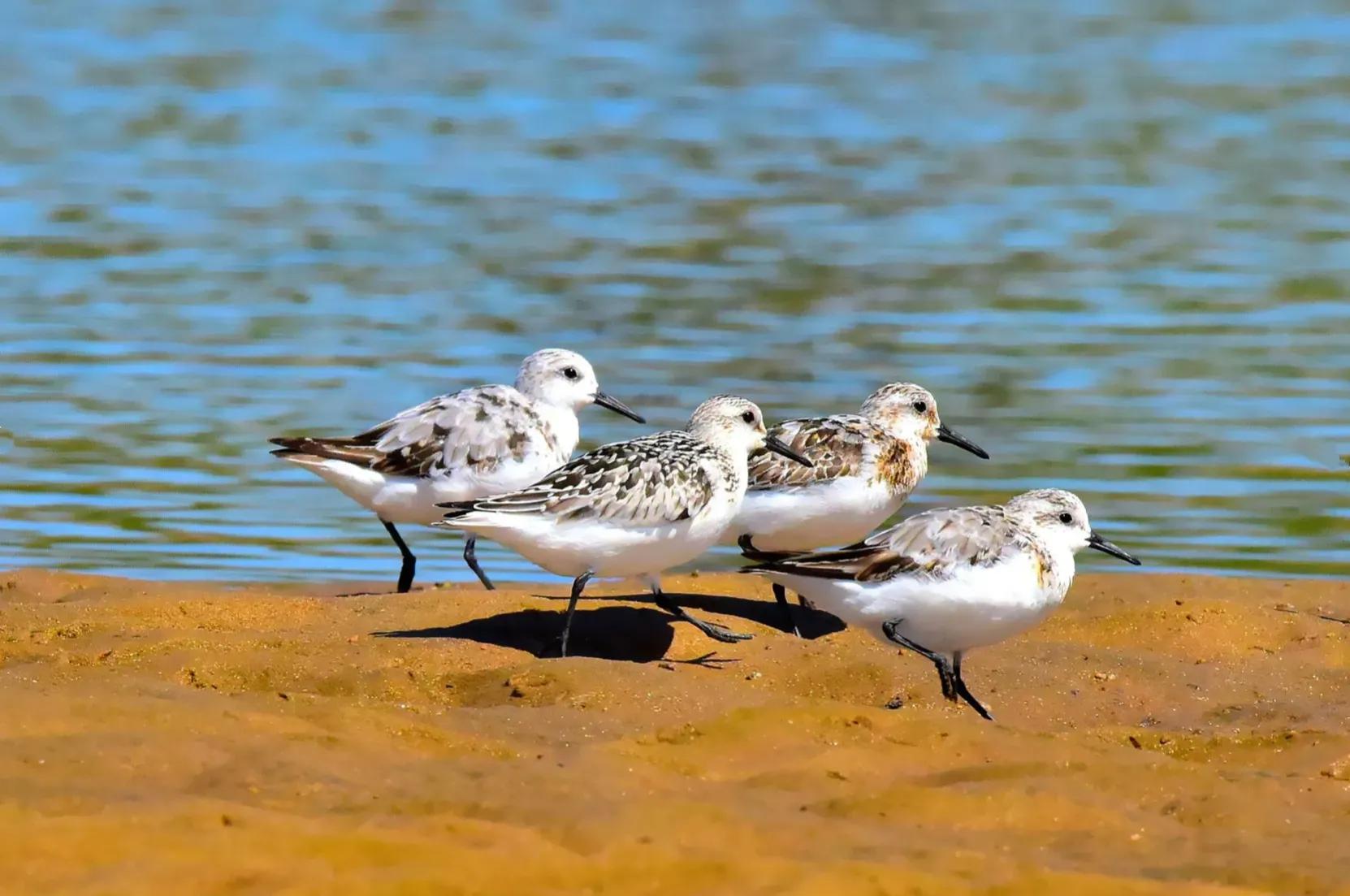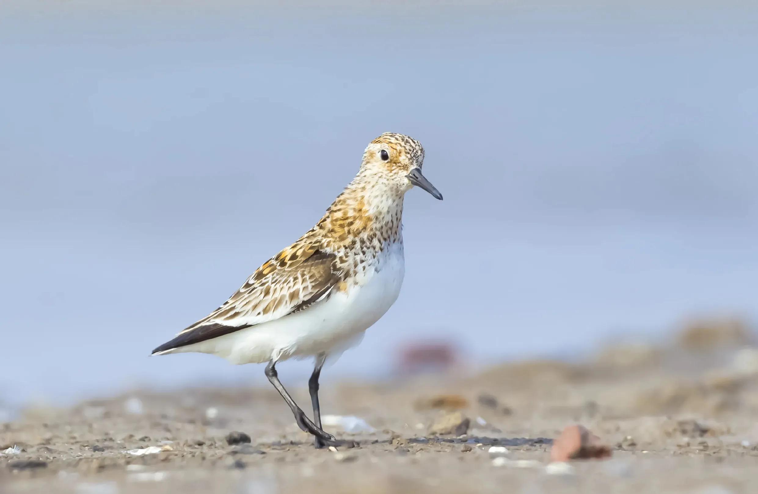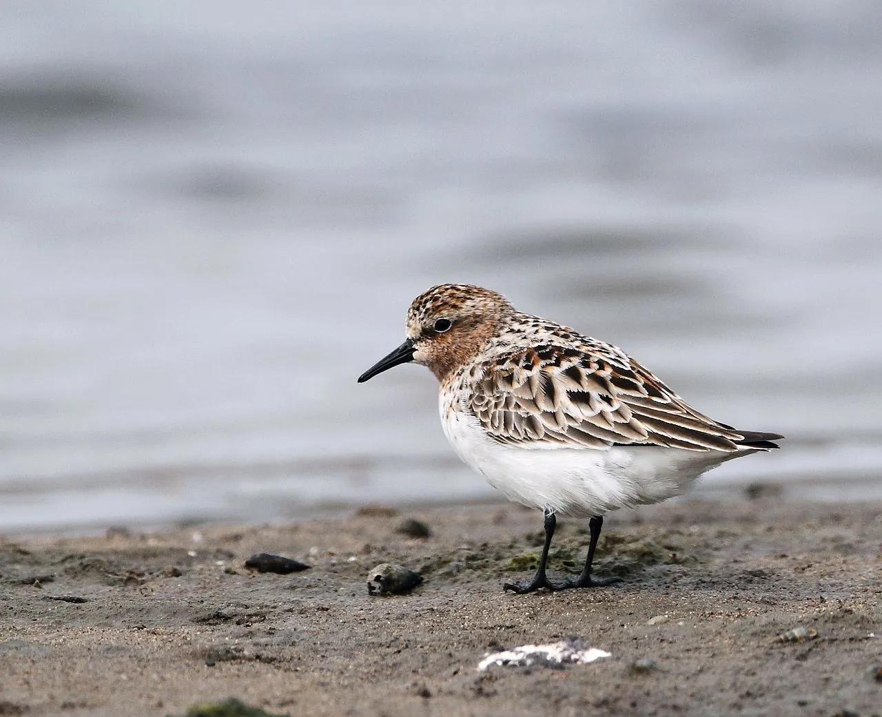 三趾鹬:鸻行目、鹬科、三趾鹬属鸟类,属小型鸟类。体长18-21厘米,体重48-84克。它们拥有黑褐色的鸟喙,如同锥子一般。爪子为黑褐色,眼睛是黑色的。喙周围、眼后、喉部为白色,点缀有细小的淡棕色羽斑,眼睛前方为棕褐色,额头以及头顶为淡棕黄色以及白色的混合,或者是黑褐色与贝白色的混合,呈条状。