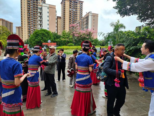 冬日的暖阳下,元江栖霞山温泉花园酒店门前暖意融融。玉溪市元江县文旅局组织身着傣族服饰的志愿者手持香包、红线,为远道而来的150人旅游团送上民族祝福,亲切的问候与灿烂的笑容,让游客瞬间感受到“热情元江”的温度。